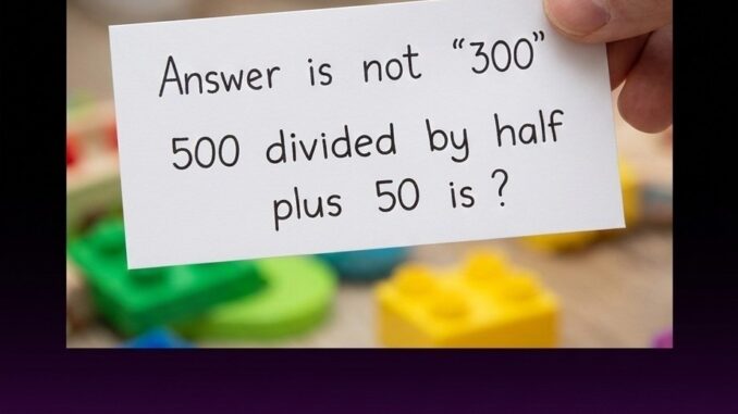 A small photo of a handwritten math question has recently sparked widespread confusion and debate online. At first glance, the problem looks incredibly simple—something most people assume they can solve in seconds. The image shows a note that reads: “Answer is not ‘300’. 500 divided by half plus 50 is ?” Underneath the photo, the caption explains that people are struggling to agree on the answer. What makes the puzzle fascinating is that it appears straightforward, yet it manages to divide opinions almost instantly. Many readers glance at the equation, quickly calculate in their heads, and confidently say the answer must be 300. After all, it feels intuitive to think of dividing 500 by 2, which gives 250, and then adding 50 to reach 300. But the note specifically warns that 300 is not the correct result. That small warning is what causes many people to pause and rethink their reasoning. Suddenly the puzzle feels less like a routine math exercise and more like a clever trap hidden inside ordinary wording. Across social media platforms and discussion forums, people are arguing about what the correct interpretation should be, proving once again how easily language can influence the way we process numbers.The confusion largely comes from the phrase “divided by half.” In everyday conversation, people often treat “half” and “two” almost interchangeably when thinking about division. When someone hears “divide by half,” their brain may instinctively interpret it as “divide by two,” which naturally leads to the 300 answer. However, mathematically speaking, dividing by one-half is not the same thing as dividing by two. In fact, dividing by a fraction smaller than one actually increases the number rather than decreasing it. This is one of those counterintuitive ideas that many people learn in school but forget later in life because it doesn’t come up often in daily calculations. When you divide by one-half, you are essentially asking how many halves fit inside the number. Since two halves make one whole, there are twice as many halves as wholes. That means dividing a number by one-half is the same as multiplying it by two. When people suddenly remember this rule, the puzzle begins to look very different from what they initially assumed. Instead of shrinking 500, the operation actually doubles it, which completely changes the outcome before the final step is even applied.Once the equation is interpreted correctly, the solution becomes clearer. The first step is recognizing that “500 divided by half” means 500 ÷ 0.5. Mathematically, dividing by 0.5 is equivalent to multiplying by 2. When we apply that rule, the result of the first part of the equation becomes 1000 instead of 250. That’s the critical moment where most people realize why the warning on the note says the answer is not 300. After reaching 1000, the final instruction is simple: add 50. When we add 50 to 1000, the final answer becomes 1050. For many people encountering the puzzle for the first time, that result feels surprising because their brain already committed to the earlier assumption. This is exactly what makes the puzzle effective—it exploits a small mental shortcut that many people unconsciously use when they read numbers quickly. Instead of carefully translating the words into mathematical meaning, they rely on familiar patterns. The puzzle demonstrates how easily a tiny shift in wording can lead to a completely different calculation, even though every part of the equation is technically straightforward.What’s interesting is that puzzles like this have a long history of spreading across classrooms, newspapers, and now social media. They are not designed to test advanced mathematical ability but rather to test attention and interpretation. In fact, the math itself in this case is extremely basic. The difficulty comes from the way the brain processes language under time pressure. When people read something that looks simple, they tend to rush through it, assuming they already know the pattern. This mental shortcut is known as heuristic thinking, and it usually helps us make quick decisions in everyday life. However, in puzzles like this one, that shortcut becomes a trap. The brain fills in the missing details automatically, converting “divide by half” into the more familiar “divide by two.” By the time someone realizes the mistake, they often have to re-evaluate the entire equation from the beginning. This moment of realization is part of what makes these puzzles so satisfying. People experience a small mental jolt when they see the correct logic, which often motivates them to share the puzzle with others just to watch the same confusion unfold again.Another reason the puzzle spreads so widely is because it creates immediate debate. Math is often viewed as a subject with clear, definite answers, so when people disagree about something that seems simple, it sparks curiosity. Some people firmly defend their first answer because it feels logical based on their interpretation. Others insist that the wording must be read more precisely. As discussions grow, different explanations emerge, diagrams appear, and eventually someone points out the key concept: dividing by one-half doubles the number. Once that explanation circulates, many readers suddenly recognize their mistake. Interestingly, the puzzle becomes less about the answer itself and more about the learning moment it creates. People remember the experience because it reveals how easily human thinking can be influenced by phrasing. In a way, the puzzle works like a tiny lesson in both mathematics and psychology. It reminds us that numbers are precise, but our interpretation of them can sometimes be surprisingly flexible depending on how the problem is presented.In the end, the little handwritten note succeeds because it combines simplicity with a subtle twist. The equation uses only basic arithmetic that most students learn early i