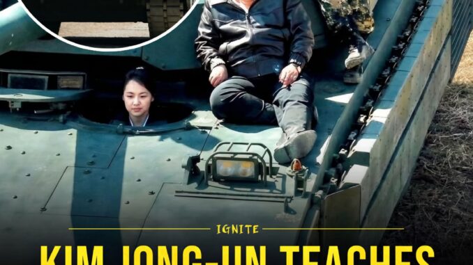State media released photos and video showing her in the driver’s position of an armored vehicle, while Kim watched from above with soldiers.