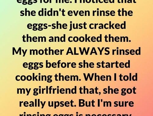 “Did you wash the eggs first?” he asked casually. “My mom used to do that before cracking them.”