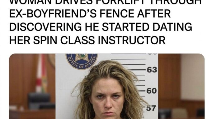 Orlando, FL — A 38-year-old Orange County woman is facing criminal mischief and grand theft equipment charges after allegedly operating a forklift through the cedar privacy fence of her ex-boyfriend’s Windermere home following the discovery that he had begun dating the woman who had been yelling motivational phrases at her every Tuesday and Thursday for fourteen months.