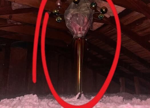 It wasn’t a cursed object, a fire hazard, or some forgotten experiment. It was the sad remains of an artificial Christmas tree, once bright and joyful, now crushed, bent, and half-swallowed by insulation. Years of dust, cobwebs, and stray decorations had transformed it into something unrecognizable, dangling like a warning from the rafters.